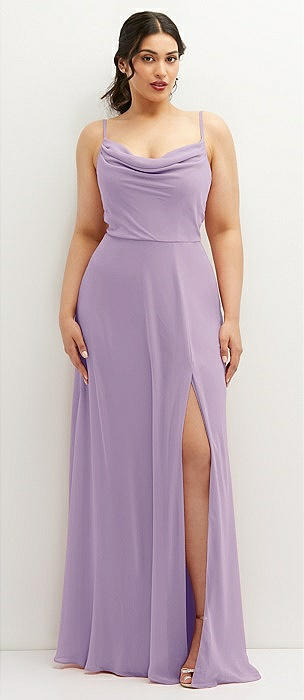 Soft Cowl-Neck A-Line Maxi Dress with Adjustable Straps in pale purple