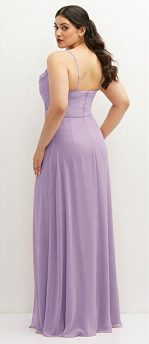 Draped Cowl-Back Princess Line Dress with Front Slit in pale purple