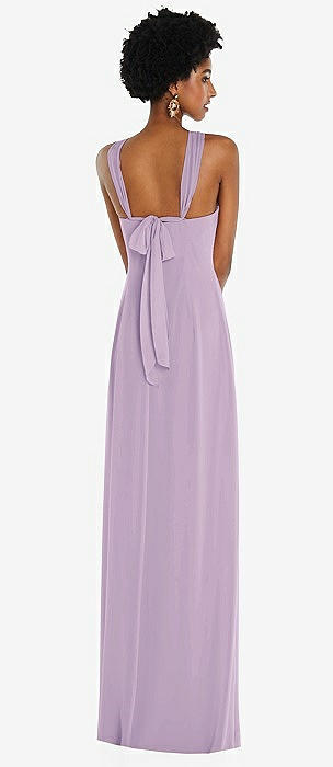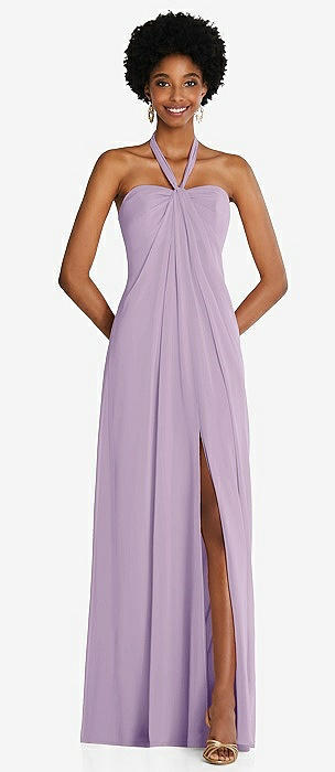 Draped Chiffon Grecian Column Gown with Convertible Straps in pale purple