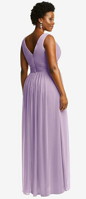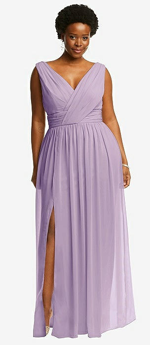 Sleeveless Draped Chiffon Maxi Dress with Front Slit in pale purple