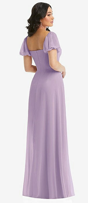 Off-the-Shoulder Basque Neck Maxi Dress with Flounce Sleeves in pale purple
