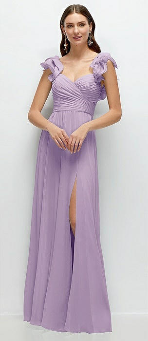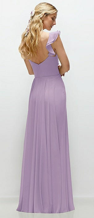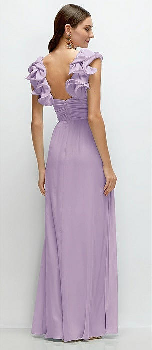 Dramatic Ruffle Edge Strap Chiffon Maxi Dress in pale purple