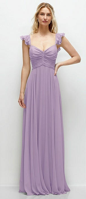 Convertible Ruffle Strap Chiffon Maxi Dress with Full Circle Skirt in pale purple