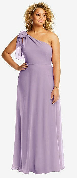 Chiffon One-Shoulder Maxi Dress with Circle Skirt in pale purple