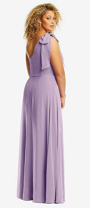 Draped One-Shoulder Maxi Dress with Scarf Bow in pale purple