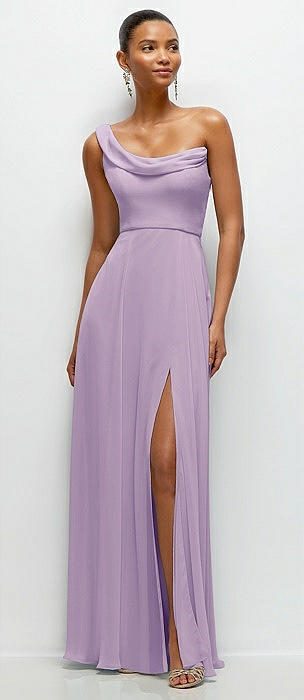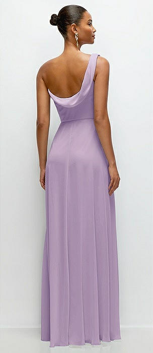 Chiffon One-Shoulder Maxi Dress with Draped Cowl Neckline in pale purple