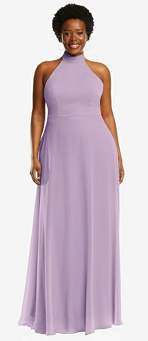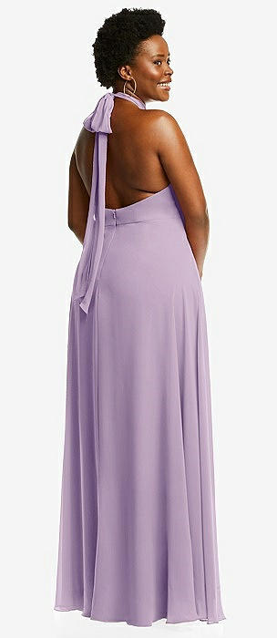 Draped Twist Halter Tie-Back Trumpet Gown in pale purple
