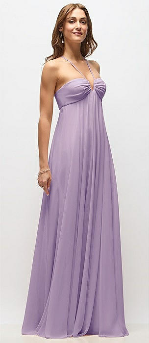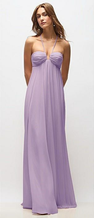 Empire Waist Chiffon Halter Maxi Dress with Convertible Spaghetti Straps in pale purple