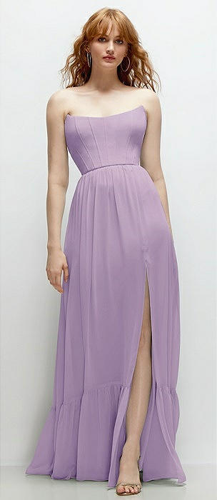 Strapless Cat-Eye Corset Maxi Dress with Ruffle Hem A-Line Skirt in pale purple