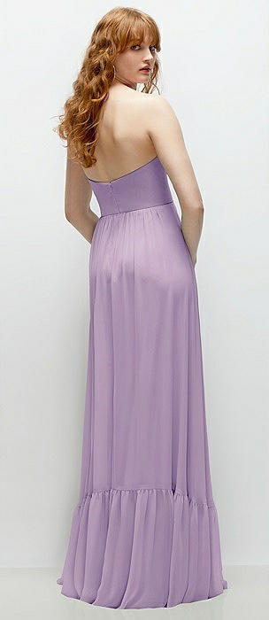 Ruffle Strap Chiffon Bustier Maxi Dress with Ruffle Hem A-Line Skirt in pale purple