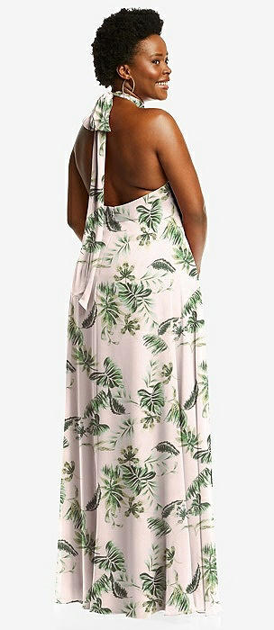 Chiffon Convertible Maxi Dress with Multi-Way Tie Straps in palm beach print