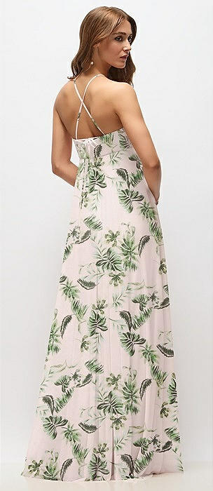 Chiffon Corset Maxi Dress with Removable Off-the-Shoulder Swags in palm beach print