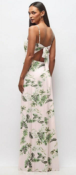 Tie-Back Cutout Maxi Dress with Front Slit in palm beach print