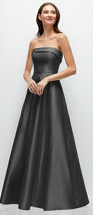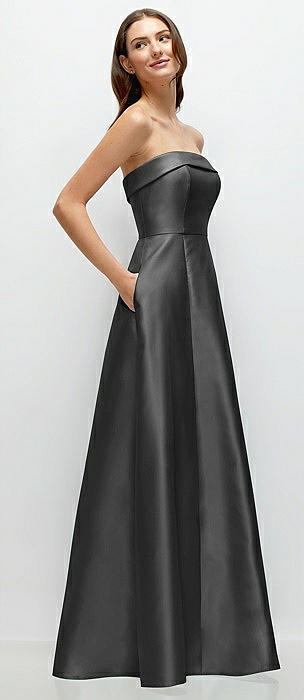 Strapless Bias Cuff Bodice Satin Gown with Pockets in pewter
