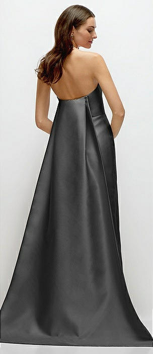 Strapless Satin Column Dress with Removeable Watteau Train in pewter