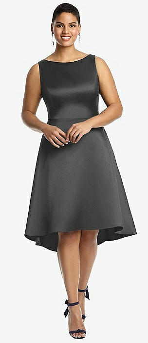 Bateau Neck Satin High Low Cocktail Dress in pewter