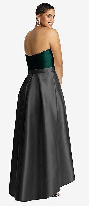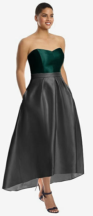 Strapless Deep Ruffle Hem Satin High Low Dress with Pockets in pewter
