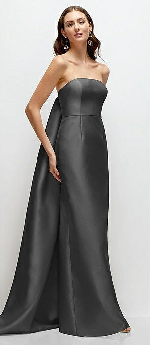 Strapless Satin Column Dress with Removeable Watteau Train in pewter