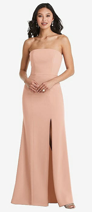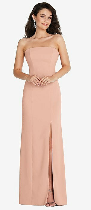 Strapless Scoop Back Maxi Dress with Front Slit in pale peach
