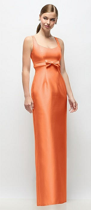 Scoop Neck Satin Column Maxi Dress with Bow at Empire Waist in portofino orange
