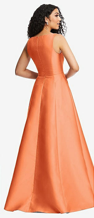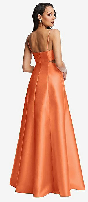 Open Neckline Cutout Satin Twill A-Line Gown with Pockets in portofino orange