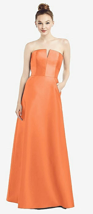 Strapless Notch Satin Gown with Pockets in portofino orange