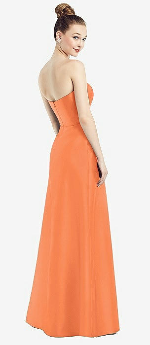 Strapless Satin High Low Dress with Pockets in portofino orange