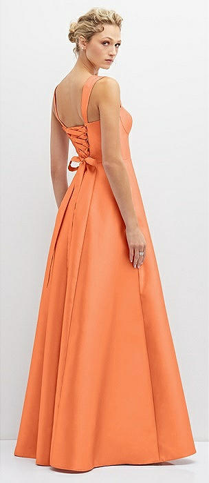 Lace-Up Back Bustier Satin Dress with Full Skirt and Pockets in portofino orange