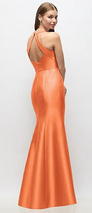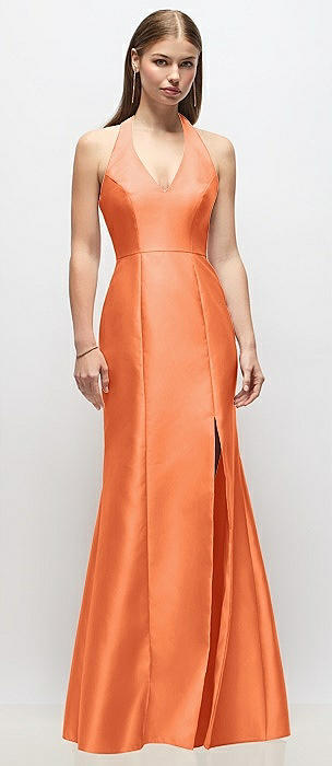 V-Neck Halter Satin Trumpet Gown in portofino orange