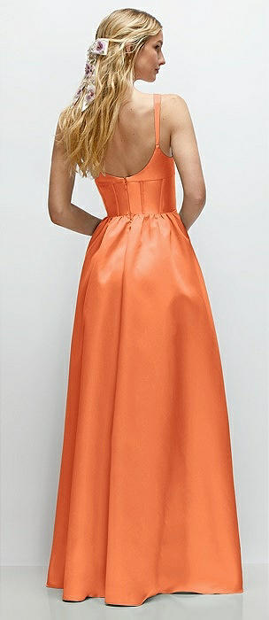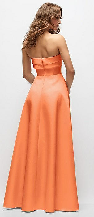 Strapless Pleated U-Wire Satin Maxi Dress with Semi Circle Skirt in portofino orange