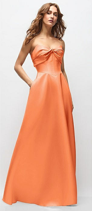 Strapless Bias Cuff Bodice Satin Gown with Pockets in portofino orange