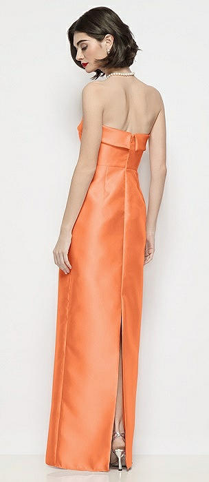 Strapless Cuff Satin Maxi Dress with Column Skirt & Back Bow in portofino orange