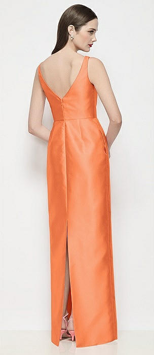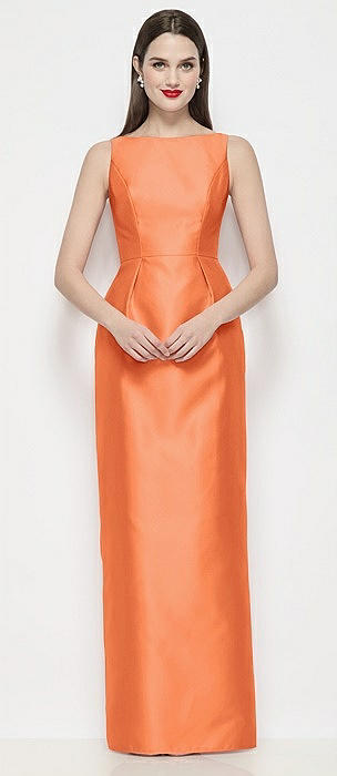 Bateau Neck Satin Maxi Dress with Pleated Column Skirt in portofino orange