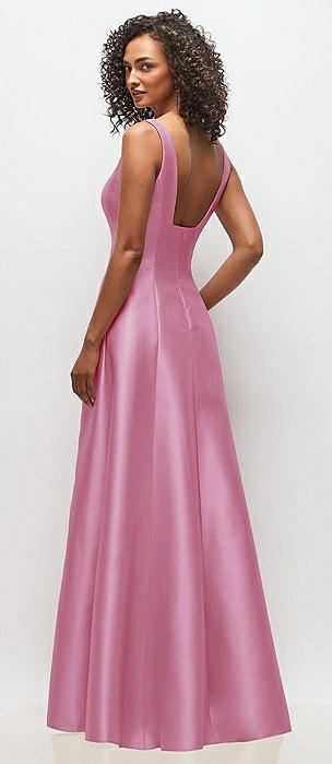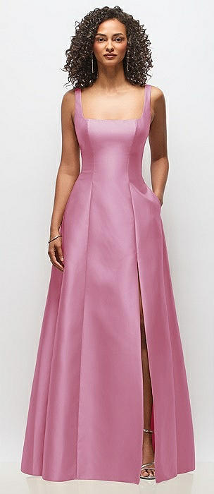Sleeveless Square-Neck Princess Line Gown with Pockets in powder pink