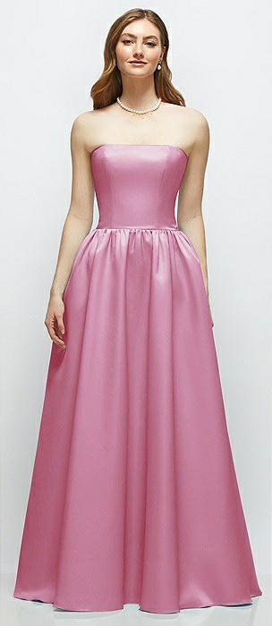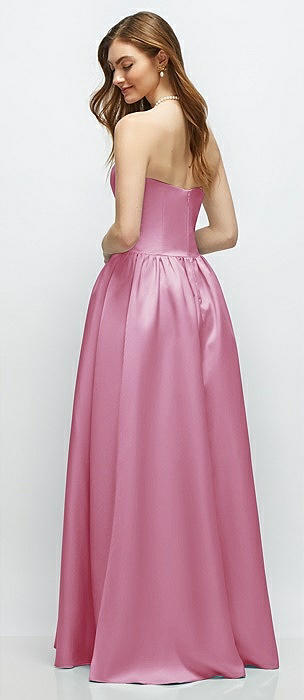 Strapless Satin Drop Waist Gown with Full Skirt in powder pink