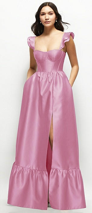 Satin Corset Maxi Dress with Ruffle Straps & Skirt in powder pink