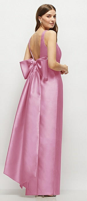 Strapless Satin Column Maxi Dress with Oversized Handcrafted Bow in powder pink