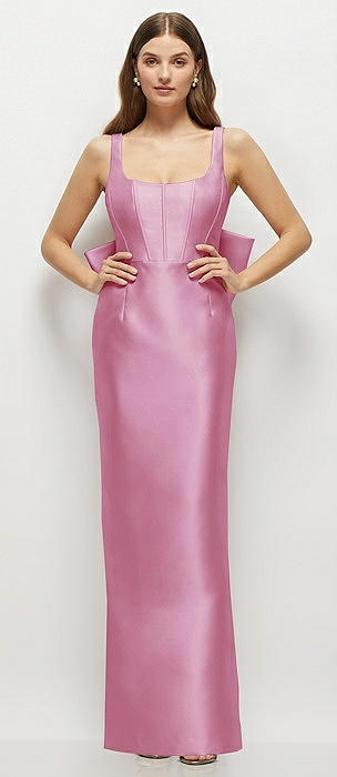 Scoop Neck Corset Satin Maxi Dress with Floor-Length Bow Tails in powder pink