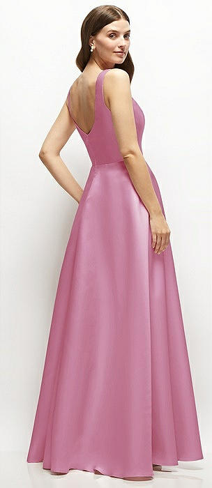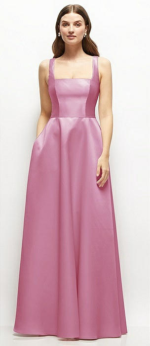 Square-Neck Satin Maxi Dress with Full Skirt in powder pink