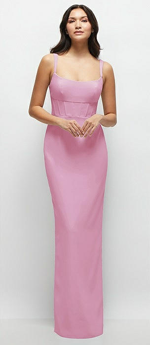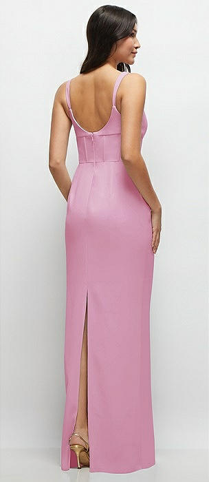 Corset-Style Crepe Column Maxi Dress with Adjustable Straps in powder pink