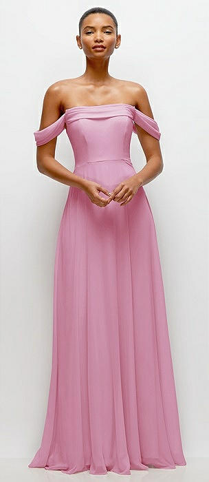 Off-the-Shoulder Draped Neckline Maxi Dress in powder pink