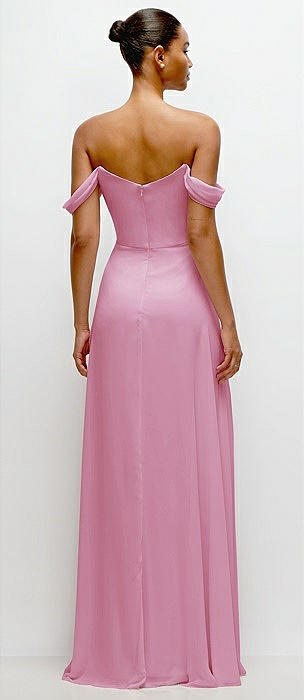 Bow-Shoulder V-Back Chiffon Gown with Front Slit in powder pink