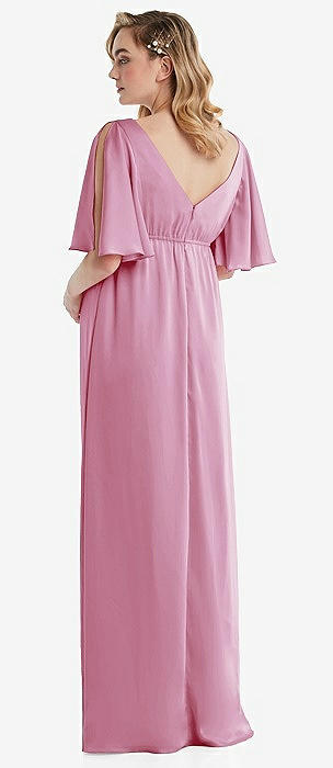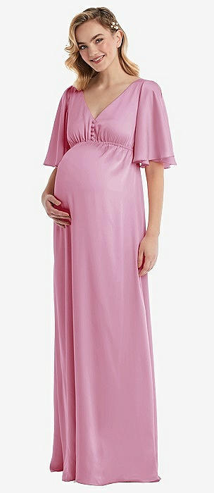 Flutter Bell Sleeve Empire Maternity Dress in powder pink