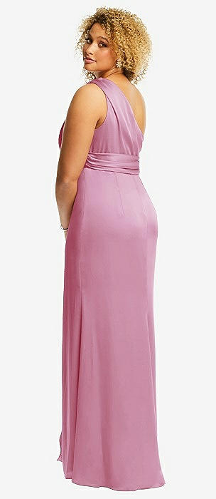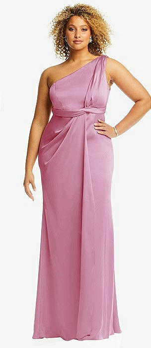 One-Shoulder Draped Twist Empire Waist Trumpet Gown in powder pink