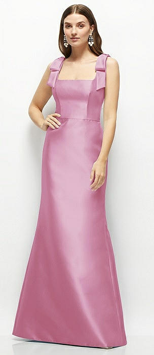 Satin Fit and Flare Maxi Dress with Shoulder Bows in powder pink