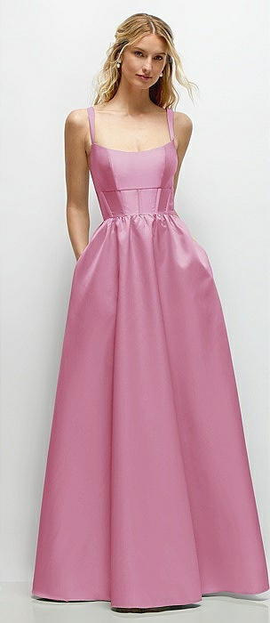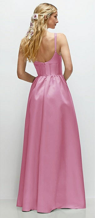 Scoop Neck Drop Basque Skirt Satin Maxi Dress with Pockets in powder pink