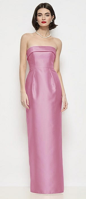 Strapless Cuff Neck Satin Maxi Dress with Column Skirt in powder pink