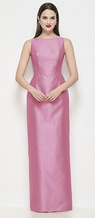 Bateau Neck Satin Maxi Dress with Pleated Column Skirt in powder pink