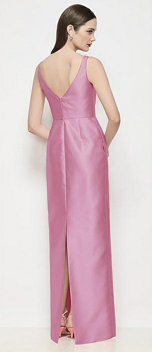 Sleeveless V-neck Satin Maxi Dress with Pleated Skirt in powder pink