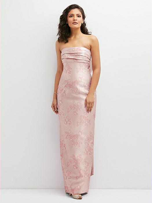 Floral Strapless Draped Bodice Column Dress with Oversized Bow in bow and blossom print